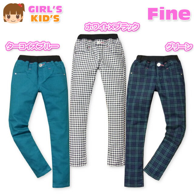【送料無料】子供服 女の子 ロング パンツ ボトム スーパーストレッチ ツイル 無地 チェック柄 ウエストゴム 女児 キッズ 100cm 110cm 120cm 130cm【メール便対応】