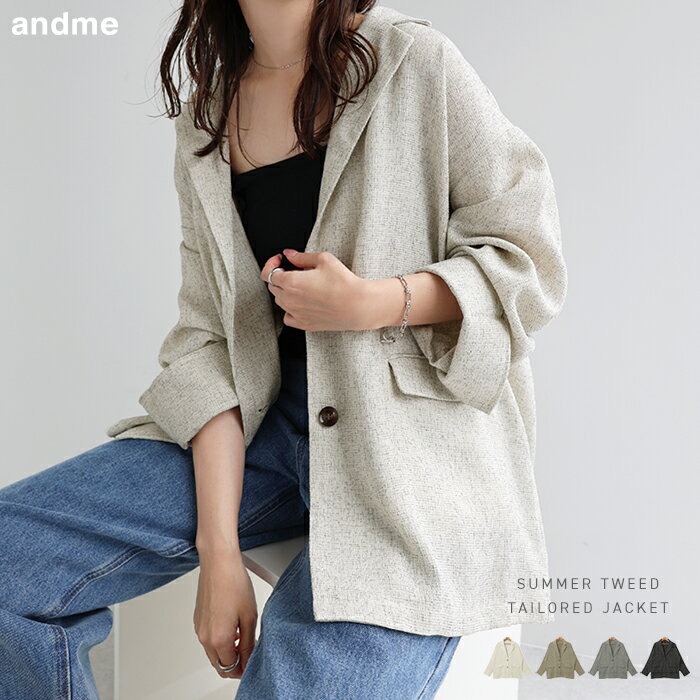 サマー ツイード テーラード ジャケット レディース アウター テーラードジャケット カーディガン 羽織 オーバーサイズ 体型カバー ゆったり 長袖 ポケット 軽量 セットアップ きれいめ オフィス 春夏 秋冬 春 夏 秋 冬