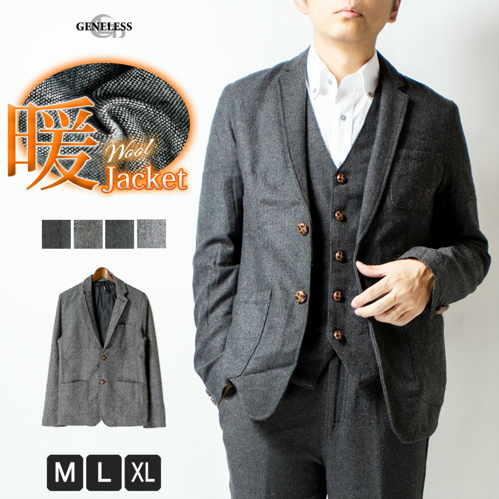 テーラードジャケット メンズ ウール ツイード 暖かい 秋冬 テーラード ジャケット ブルゾン アウター ツイードテーラードジャケット 全4色 263017 ジェネレス