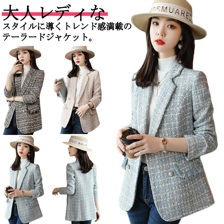 送料無料 ツイードテーラードジャケット レディース 秋 冬 ジャケット アウター テーラードジャケット ツイード調 通勤 フォーマル 入学式 卒業式 入園式 卒園式 ママ 七五三 お宮参り 母親