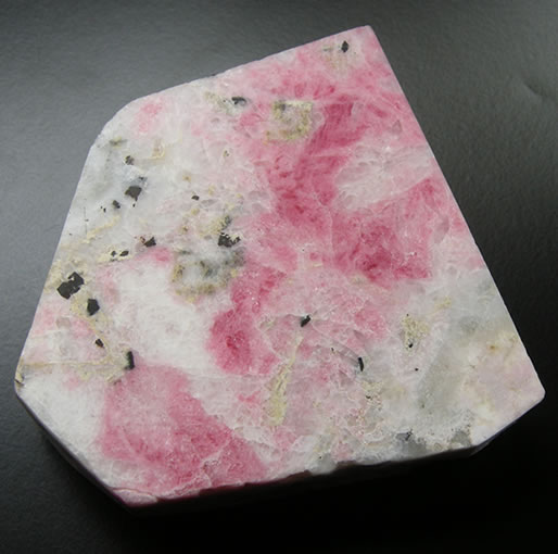 ■産地 グリーンランド イルモサック産■サイズ 最長61×58×18mm■重さ 104.7gツグツパイトは1957年に発見された新しい石で、Narsaq半島のイルマサック・コンプレックスと呼ばれる場所で発見されました。濃い赤い色を持ち、モース硬度は6.5、しばしばアルバイトやアナルシム、パイロクロア、スファレライトなどを伴って産出されます。ツグツパイトは紫外線に当たると鮮やかなピンク色に変化します。これらの色変化は、鉱物の結晶構造と微細な包含物によるもので、紫外線を当てると、蛍光色に輝きます。ツグツパイトは、ロイヤルコートジュエラーにより、宝石として最初に紹介されました。そのため現在Narsaq地域は宝石生産地として有名になっています。近年この石はパワーストーンとしてニューエイジから大変注目を集めています。身に着けるか、常に持っていることにより多くの種類の否定的なエネルギーからの保護の目的にお守りとしてよく使われることがあるそうです。ですがこの石の本領は愛の関係、結びつきをより強いものし、愛に対する感受性を高める力にあると思います。この石のエネルギーは、その輝く美しい色と同様に大変パワーがあり、強力だと感じます。本当に素晴らしいワクワクした感覚を与える石であり、まさに愛と至福の石だと思います。この石を持つ人は、自由と偉大なる愛がツグツパイトから流れるのを感じるかもしれません。あなた自身と全ての存在に寛容さ、可能性、犠牲と終りのない愛を気づかせるかもしれません。ツグツパイトは高い場所を飛ぶ飛行機の操縦をするような高い意識に心を引き上げることのできる崇高な石だと感じています。この石の魔法のような言葉を聞くことが出来たら聞いてみてください。「この一日はありふれた普通の1日ではありません。神秘的でマジカルな1日なのです。」と言っているように聞こえたことがあります。「ツグツパイト(タグトゥパイト)はハートチャクラの最も深遠なエネルギーの石です。その波動は失われた情熱と忘れられた愛を再び目覚めさせることができます。」ロバート・シモンズ「タグトゥパイトのエネルギーはハートからクラウンチャクラをつなげることにフォーカスしています。その周波数は至福、歓喜、すべてを包み込む愛と、創造主のマインドとの和合を生じさせ、宇宙の愛と意識へのイニシエーションのための強力な石であり、ハートセンターの強力な発展、思いやり、感情的なセルフの癒しを促進する瞑想ツールとして用いることができます。」ネイシャ・アーシアンツグツパイトはハートの強烈な解放と癒しと同時に、幻想的なトランス状態をもたらすことがあるそうで、シャーマンの儀式などに用いられる植物と同じような作用をもたらすとネイシャは指摘しています。いわゆる強い石に見られる’石酔い’ですが、車の運転などの際にはくれぐれもお気をつけください。非常に高品質な美しい石です。実際のピンク色はもっと濃いと思います。原石をカットしたあとに表裏を軽く磨いた感じで少なくマットな手触り、やわらかな光沢があります。裏面も美しく模様にも深い味わいがあります。最近はピンク色の箇所の多いツグツパイトが原石・ポリッシュともになかなか入手できなくなってきて高価になってきたように思います。これくらい大きくしかもピンク色の多い高品質の石は今後しばらくは入手困難かと思います。