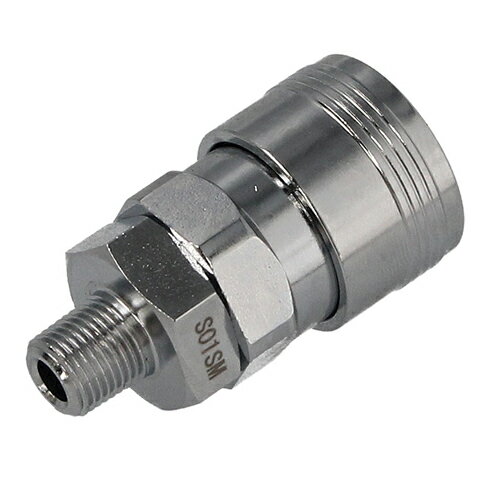 【特徴】エアホースなどの配管やエアー工具への接続、離脱が簡単操作で確実に行えます。 【用途】エアー工具、エアーホース等との脱着。 【機能】スリーブを引き下げて、プラグを押し込むだけで接続できます。 配管や工具との離脱はスリーブを引き下げるだけの簡単操作です。 スリーブ先端部をぶつけたり、不意に接触しても外れにくいツータッチ操作で、単純な構造ですが故障も少ないです。 丈夫で耐久性に優れた鋼鉄製です。 1/8管用テーパーメネジ取り付け用です。 【仕様】●最高使用圧力:1.5MPa。 ●耐圧力:2.0MPa。 ●シール材質:ニトリルゴム。 ●使用温度範囲:−20〜80度。 ●ネジ:1/8管用テーパーオネジR1/8(PT1/8)。 ●適用流体:空気。 ●質量:約73g。 【材質】●鋼鉄・ニトリルゴム。