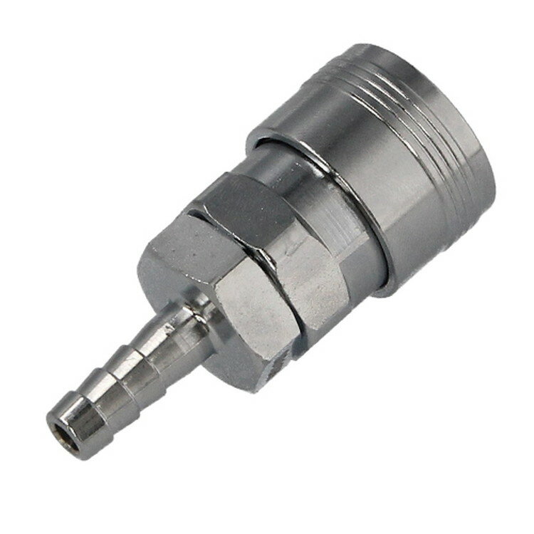 【特徴】エアホースなどの配管やエアー工具への接続、離脱が簡単操作で確実に行えます。 【用途】エアー工具、エアーホース等との脱着。 【機能】スリーブを引き下げて、プラグを押し込むだけで接続できます。 配管や工具との離脱はスリーブを引き下げるだけの簡単操作です。 スリーブ先端部をぶつけたり、不意に接触しても外れにくいツータッチ操作で、単純な構造ですが故障も少ないです。 丈夫で耐久性に優れた鋼鉄製です。 内径6.5/7.0×外径10.0mmウレタンホース取り付け用です。 【仕様】●最高使用圧力:1.5MPa。 ●耐圧力:2.0MPa。 ●シール材質:ニトリルゴム。 ●使用温度範囲:−20〜80度。 ●ナット部:内径6.5/7.0×外径10.0mm対応。 ●適用流体:空気。 ●質量:約88g。 【材質】●鋼鉄・ニトリルゴム。