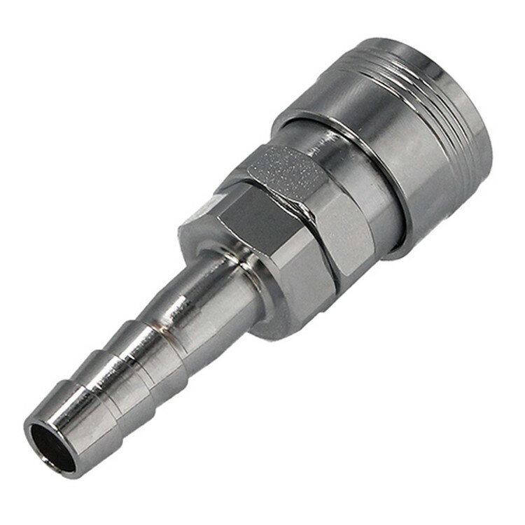 【特徴】エアホースなどの配管やエアー工具への接続、離脱が簡単操作で確実に行えます。 【用途】エアー工具、エアーホース等との脱着。 【機能】スリーブを引き下げて、プラグを押し込むだけで接続できます。 配管や工具との離脱はスリーブを引き下げるだけの簡単操作です。 スリーブ先端部をぶつけたり、不意に接触しても外れにくいツータッチ操作で、単純な構造ですが故障も少ないです。 丈夫で耐久性に優れた鋼鉄製です。 内径8.5×外径12.5mmウレタンホース取り付け用です。 【仕様】●最高使用圧力:1.5MPa。 ●耐圧力:2.0MPa。 ●シール材質:ニトリルゴム。 ●使用温度範囲:−20〜80度。 ●ナット部:内径8.5×外径12.5mm対応。 ●適用流体:空気。 ●質量:約99g。 【材質】●鋼鉄・ニトリルゴム。