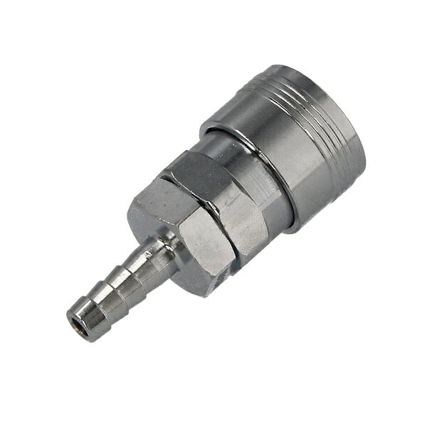エアホースなどの配管やエアー工具への接続、離脱が簡単操作で確実に行えます。[用途]エアー工具、エアーホース等との脱着。[機能]スリーブを引き下げて、プラグを押し込むだけで接続できます。配管や工具との離脱はスリーブを引き下げるだけの簡単操作です。スリーブ先端部をぶつけたり、不意に接触しても外れにくいツータッチ操作で、単純な構造ですが故障も少ないです。丈夫で耐久性に優れた鋼鉄製です。11mm内径ホース取り付け用です。[仕様]●最高使用圧力:1.5MPa。●耐圧力:2.0MPa。●シール材質:ニトリルゴム。●使用温度範囲:−20〜80度。●タケノコ外径:11mm。●適用流体:空気。●質量:約84g。[材質]●鋼鉄・ニトリルゴム。
