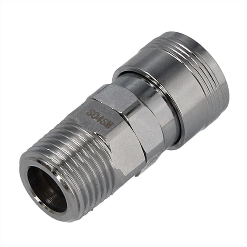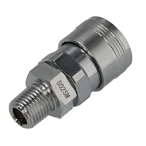 エアホースなどの配管やエアー工具への接続、離脱が簡単操作で確実に行えます。エアー工具、エアーホース等との脱着スリーブを引き下げて、プラグを押し込むだけで接続できます。配管や工具との離脱はスリーブを引き下げるだけの簡単操作です。スリーブ先端部をぶつけたり、不意に接触しても外れにくいツータッチ操作で、単純な構造ですが故障も少ないです。丈夫で耐久性に優れた鋼鉄製です。1/4管用テーパーメネジ取り付け用です。最高使用圧力:1.5MPa耐圧力:2.0MPaシール材質:ニトリルゴム使用温度範囲:-20~80度ネジ:1/4管用テーパーオネジR1/4(PT1/4)適用流体:空気質量:約78g鋼鉄・ニトリルゴム