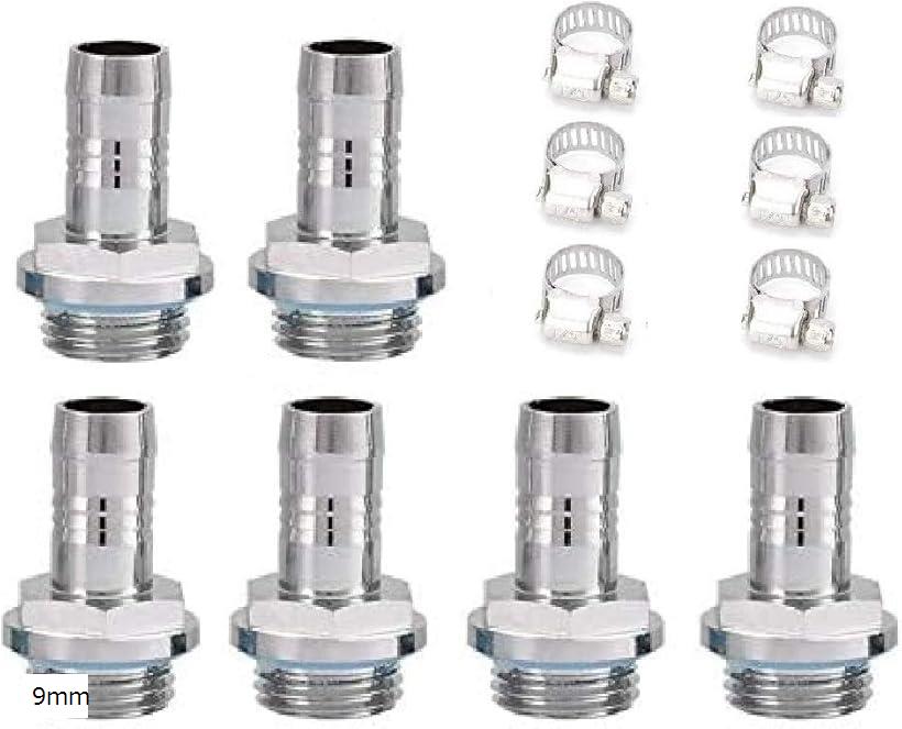 水冷ツータッチ継手 水冷フィッティング G1/4 チューブコネクタ ステンレスバンド付 6個 9mm (9mm)
