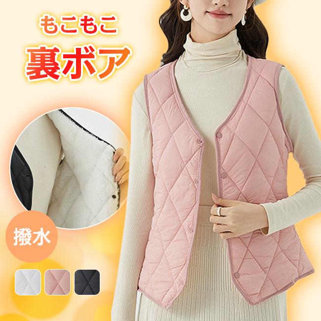 ベスト 裏ボア レディース おしゃれ あったか 暖かい もこもこ 厚地 秋冬 ルームウェア キルティング 撥水 洗える 裏起毛 大きいサイズ 重ね着 キレイめ おしゃれ シンプル 20代 30代 40代