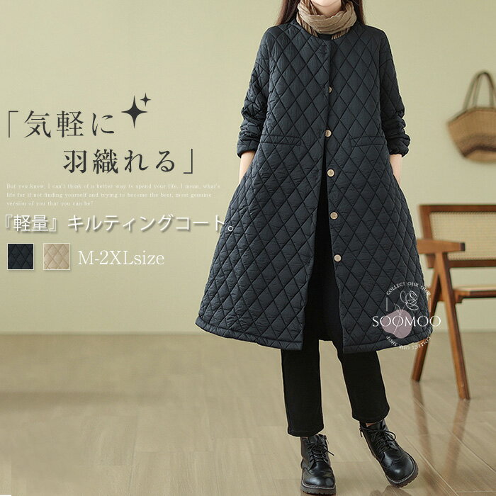 キルティングコート レディース フレア キルティングジャケット 秋冬 中綿コート ロング 中綿 ロングコート ロング丈 羽織り キルティング ふんわり 大きいサイズ 大人可愛い ゆったり アウター 軽量 暖かい 防寒 体型カバー 無地 送料無料