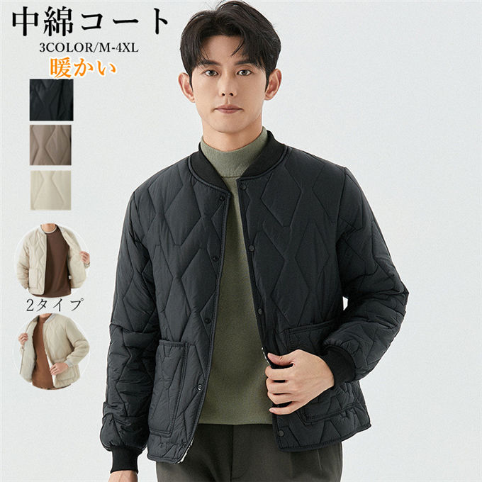 中綿コート スタジャン 中綿ジャケット キルティングジャケット メンズ 袖裹起毛 裏ボア ショート丈 ダウン風 厚手 防寒 防風 暖かい ゆったり ジャケット 大きいサイズ コーチジャケット ブルゾン 無地 長袖 秋冬 アウトドア メンズファッション 送料無料