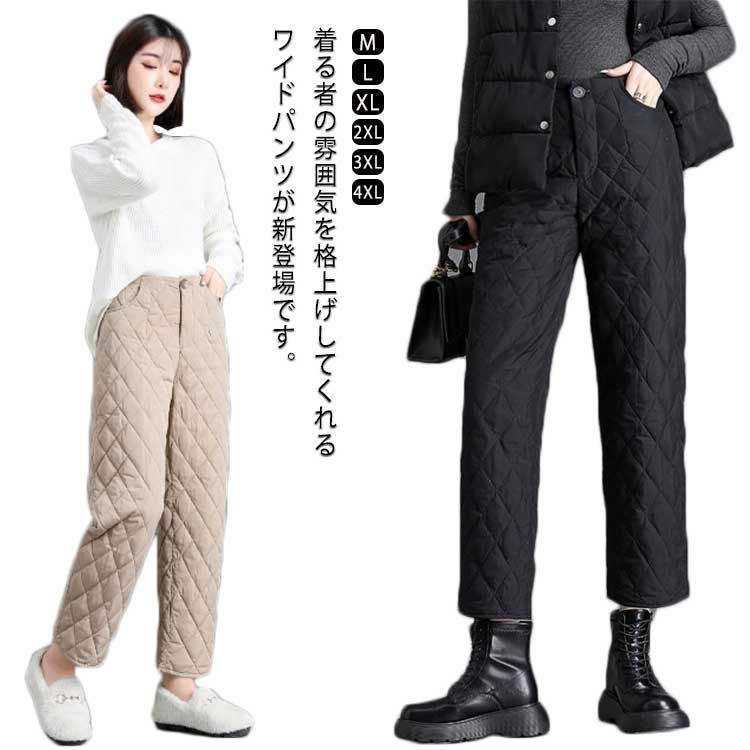 中綿パンツ キルティング ワイドパンツ 中綿入り ウェストゴム レディース ポケット付き 暖かい 長ズボン 軽量 中綿パンツ ボトムス あったか 防寒 アウトドア 無地 大きいサイズ