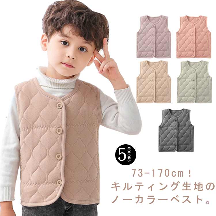 送料無料 キルティングベスト キッズ ベビー ジュニア 子供用 ベスト 中綿 男の子 女の子 キルトベスト シルク 前開き インナー ベスト 子供服 あったか 防寒 アウター 部屋着 通園 通学 袖なし ノーカラー トップス カジュアル 保温性 おしゃれ 暖かい 73-170cm
