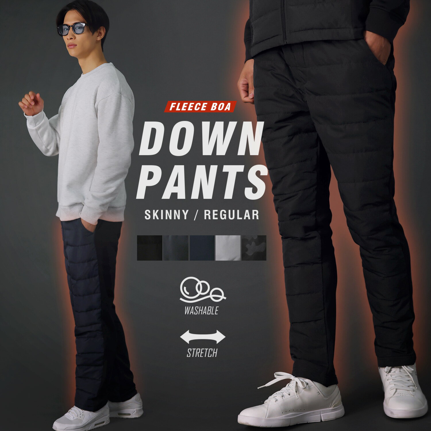 【セットアップ対応】 ダウンパンツ メンズ スリム レギュラー 冬 冬服 イージーパンツ ダウンフェザー 切り替え ボア シャギー 裏起毛 キルティング ストレッチ ベルトループ ゴルフ ゴルフパンツ 防寒 暖かい ブラック ネイビー カーキ チャコール グレー M L LL XL XXL