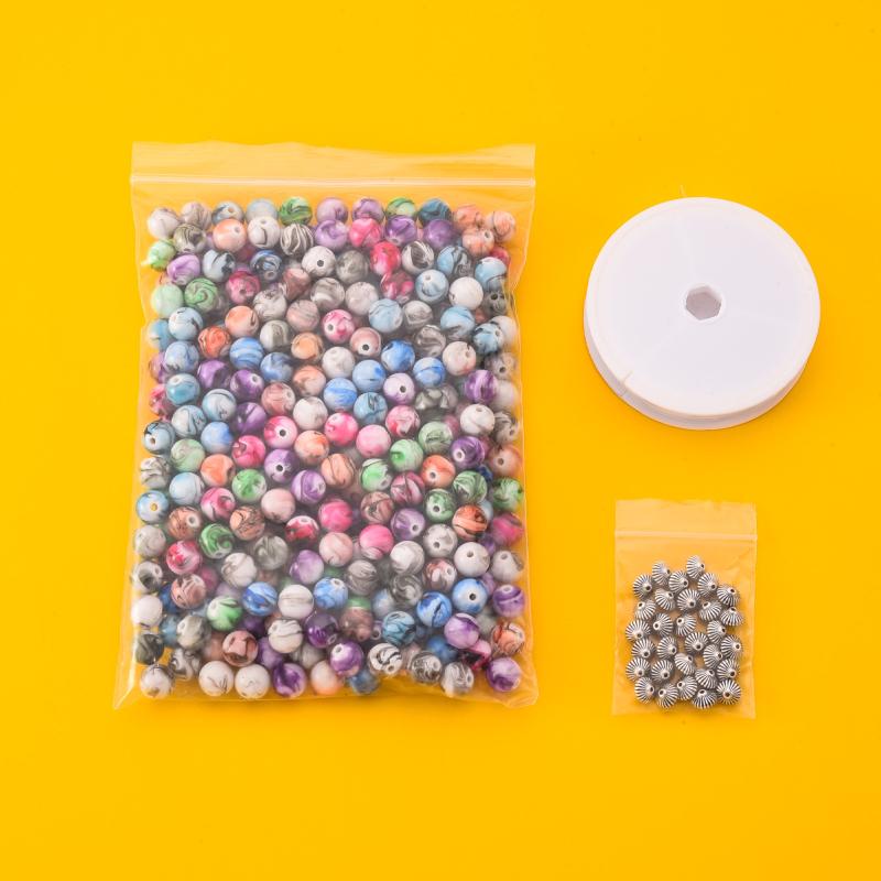 ・カテゴリ: 散珠・素材: アクリル・加工方法: スプレー塗装・商品内容: DIYセット(アクリルビーズ、合金ビーズ、ゴム紐)・カラー: 混色・スタイル: 清新甜美