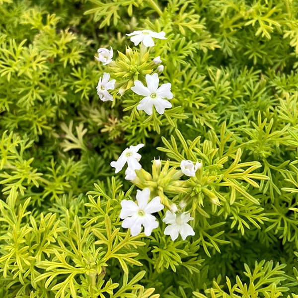 美しいカラーリーフのバーベナ草花の苗/バーベナ:テネラ オーレア2.5-3号ポット病気に強く、個性的な花色が楽しめるテネラシリーズのカラーリーフ品種です。繊細な切れ込みの入る黄金葉がとてもきれいで、花が咲いていなくてもきれいです。白花を咲かせます。寄せ植えやハンギングプランターにご利用ください。 タイプクマツヅラ科の半耐寒性多年草草丈25〜30cm開花期4〜10月用途花壇、鉢植え、ハンギングバスケット、グランドカバー日照日向むき育て方:日当り、風通しのよい場所で育てます。用土の表面が乾きはじめたら、タップリ水をかけます。排水のよい用土に緩効性肥料を入れて植え付けてください。植え付け後1ヶ月が過ぎたら、月1回の置肥もしくは週1回の液肥を与えてください。切り戻し後に追肥を施しておくと新芽がでてきます。 肥料を切らさない、水切れさせない、花付きが悪くなったら切り戻しを行うことがポイントです。お届けの際は苗の状態です。※写真はイメージです。