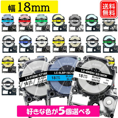 キングジム用 テプラ PRO 互換 テープカートリッジ カラーラベル 18mm 【5個自由選択】色選べるセット 強粘着 【メール便送料無料】