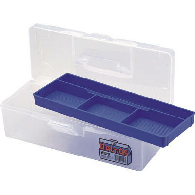 ■1枚トレー付です。■小型工具やホビー用工具の収納に最適です。■中身が見やすいクリア色です。【用途】・現場・家庭での小型ツール、ライトツールの収納【仕様】・色: クリア・外形寸法(mm)間口: 322・外形寸法(mm)奥行: 128・外形寸法(mm)高さ: 100・有効内寸(mm)間口: 308・有効内寸(mm)奥行: 113・有効内寸(mm)高さ: 60・南京錠(別売): 取付不可・本体・蓋/クリア 中トレー/ブルー・中皿付【材質/仕上】・本体・フタ: ポリプロピレン(PP)・中皿: 耐衝撃性コーポリマー(PP)【セット内容/付属品】・1段トレー