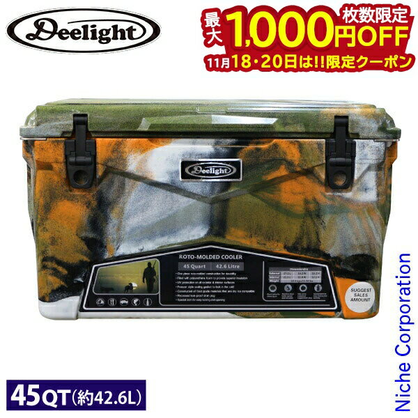 【18・20日は!枚数限定 最大1,000円OFFクーポン】ディーライト Deelight アイスランドクーラー 45QT オレンジカモ DLIGHT392 クーラーボックス 大型 アウトドア クーラー キャンプ