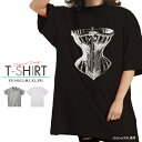 Tシャツ レディース メンズ クルーネック 丸首 綿 半袖 カットソー 大人かわいい オシャレ かっこいい ペア カップル おそろ リンクコーデ コルセット アンティーク ビンテージ ヴィンテージ レトロ 中世 ファッション モノクロ 白黒 イラスト 絵