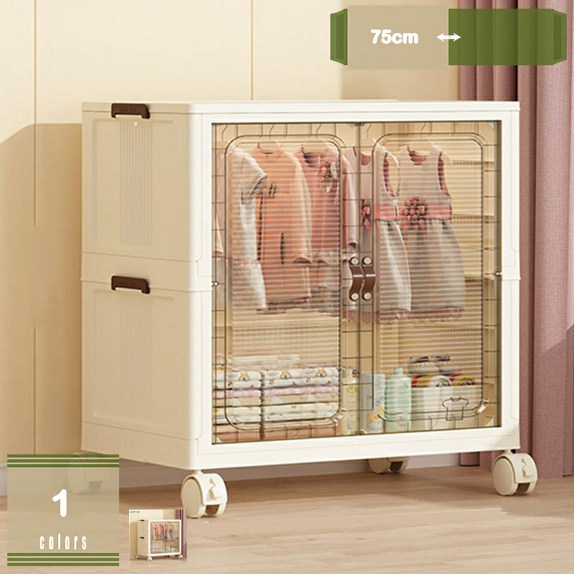 収納キャビネット 折りたたみ 収納ボックス 扉付き 折り畳みコンテナ 省スペース 組立簡単 収納ケース 押し入れ キャスター キッチンワゴン 半透明 おしゃれ 大容量 防塵 防湿 無臭 書類/衣類/布団/おもちゃ/小物/食品収納 mysco