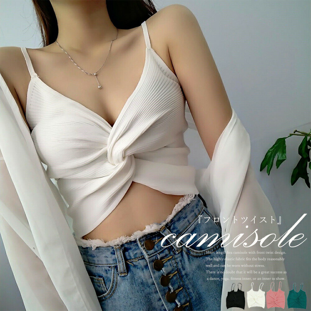 キャミソール フロントツイスト へそ出し インナートップス レディース 肌見せ ショート丈インナー ねじりデザイン キャミトップ 重ね着 ベアトップ 85YN-900309