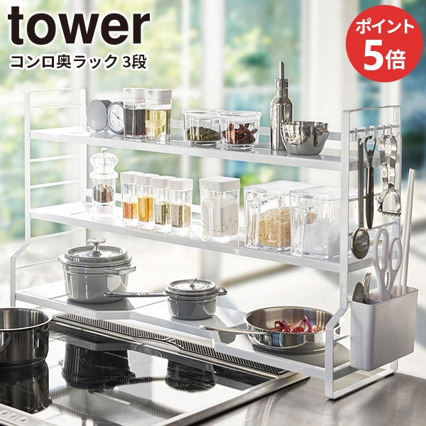 3/20 20:00〜 当店限定P5倍 × マラソン ◆【山崎実業】コンロ奥ラック 3段 ホワイト ブラック // YAMAZAKI 山実 モノトーン 雑貨 人気 コンロ奥隙間ラック タワー コンロ奥 コンロ奥ラック コンロ隙間ラック キッチン デッドスペース棚 台所 タワーキッチン収納 タワ