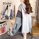 パーカー フード付き レディース 通販 上着 羽織り 羽織 アウター デニム 切り替え スウェット ドッキングパーカー フード ドロップショルダー オーバーサイズ 体型カバー ゆったり ドッキング トップス 春 秋 冬 デザイン おしゃれ オシャレ 華やか