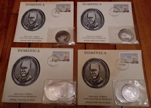 4枚セット プルーフ 1オンス シルバー 1982年 フランクリン・デラノ・ルーズベルト ドミニカ共和国 初日カバー