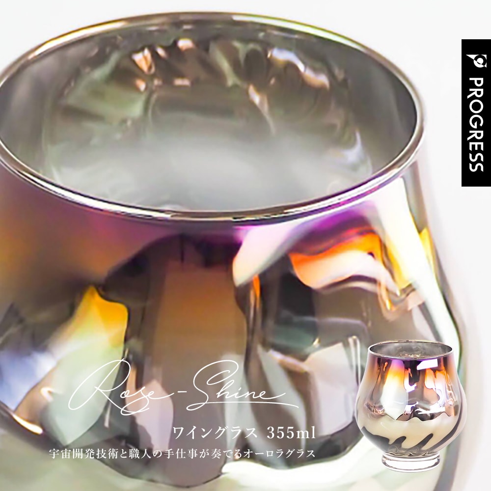PROGRESS ワイングラス | Rose-Shine | [ 送料無料 ] 正規品 おしゃれ ワイン 洋酒 チタンミラー 日本製 お祝い 父の日 ギフト プレゼント ブランデー ビール 酒 お酒がまろやかに コルクコースター付 誕生日 記念日 プログレス