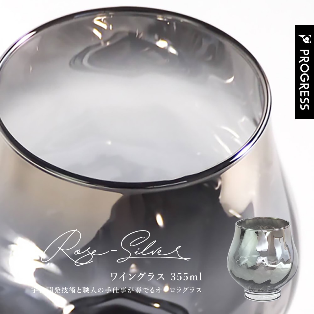 【ブランド直営】 PROGRESS Rose-Silver ワイングラス 355ml ギフト 保証書付 送料無料 名入れ刻印可 母の日 父の日 誕生日 退職祝い 新築祝い 新生活 結婚祝い 記念品 おしゃれ オーロラ ブランデー ビール お酒 ギフトラッピング プレゼント 宅飲み プログレス