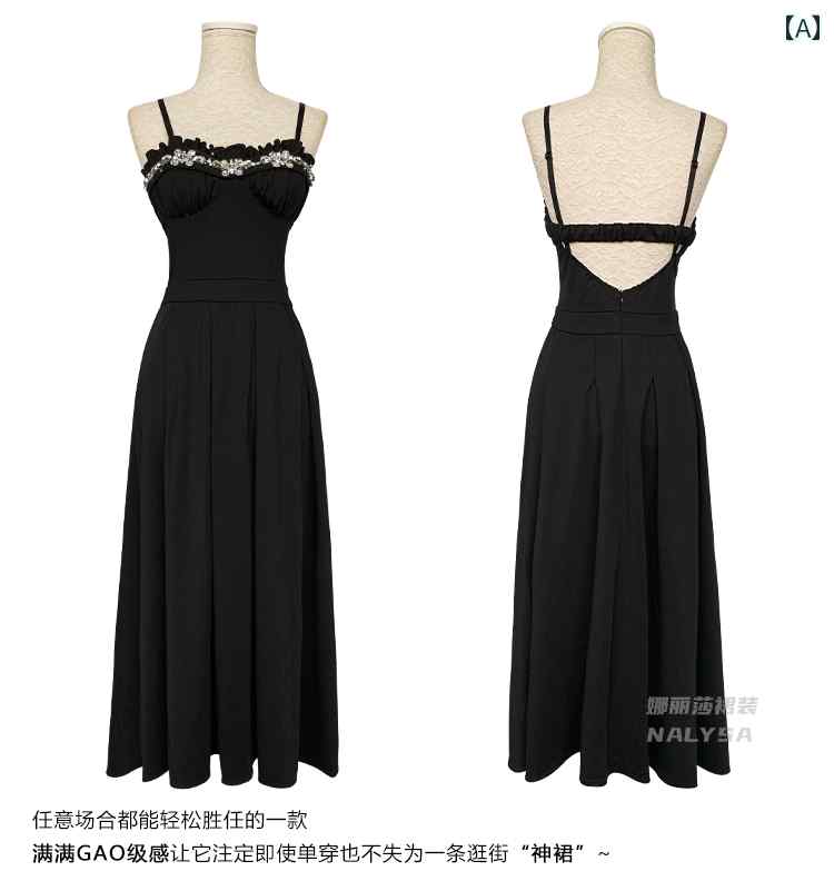 レディース ワンピース 黒 サスペンダー スカート 年次 パーティー ドレス バースデー リトル ブラック ロング 海辺 リゾート ホリデー ビーチ