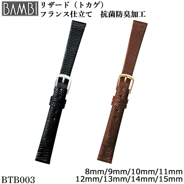 【20日20時からポイント10倍】 腕時計 ベルト 時計 バンド BAMBI バンビ トカゲ リザード 8mm 9mm 10mm 11mm 12mm 13mm 14mm 15mm 革 交換 替えベルト BTE003