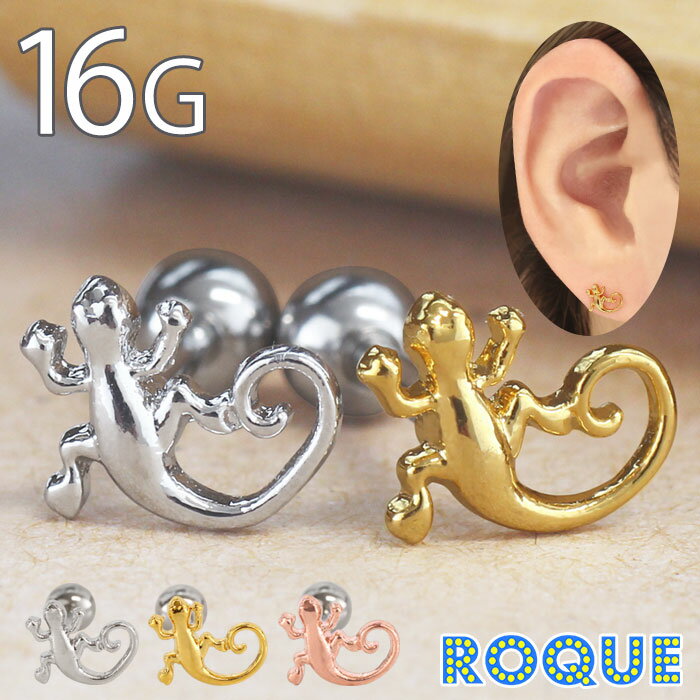 【全品送料無料】 軟骨ピアス 14G 16G ボディピアス かわいい サージカルステンレス 金属アレルギー トカゲ とかげ 蜥蜴 爬虫類 は虫類 キャッチ いきもの 生き物 リザード ストレートバーベル おしゃれ セカンドピアス メンズ なんこつぴあす