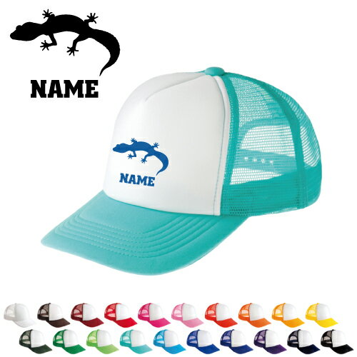 トカゲ/名入れメッシュキャップ 名入れ 部活 サークル チームウェア お揃い 記念 クラブ ヒョウモントカゲモドキ 爬虫類 男女兼用 メンズ レディーズ ジュニア キッズ カジュアル アウトドア ツバ 野球帽