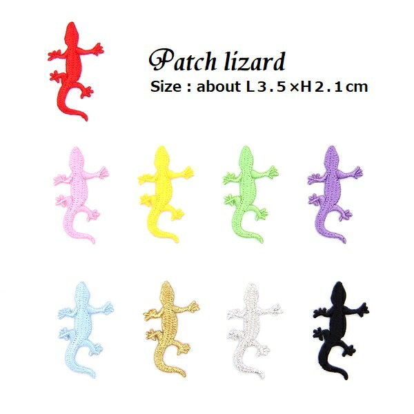 ワッペン 蜥蜴(とかげ トカゲ) リザード 全長3.5×最大横幅2.1cm前後 《刺繍ワッペン アイロンワッペン アップリケ 大人向けワッペン 爬虫類のワッペン》