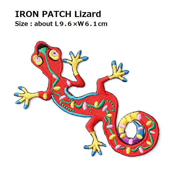 その他の爬虫類のワッペンはコチラから⇒ 【商品詳細】 ■サイズ目安/ 最大横幅6.1×全長9.6cm前後 ■入数 1枚 ■原産国 タイ ■ラッピング/無料で承ります。※「貼り付けの手順として」ノリの付いた裏面に少し指で水をつけ、貼り付けたい布等にノリ側の面を備え付け、上からアイロンを5秒くらいあてては離すを何度か繰り返してください。生地にもよりますが、できれば裏面からもあてればさらに良く付きます。何度も洗濯をする物や、動きやすい部位に貼る場合は剥げれやすくなるので、アイロンをあてた後、縫いつけることをおススメします。接着剤を付けるのもひとつの方法です。 【メール便OK】 全国一律 送料160円 ■他のメール便OKの商品とあわせて、A4・厚さ2cmまで。 ■メール便OKと表記の商品に限ります。 ■メール便の配達につきましては、ポストへの投函となります。 × 代金引換 × 日時指定 × 盗難・紛失・破損の保障 ※メール便をご希望のお客様は、配送方法の選択で 必ず「メール便」をご選択ください。※「サイズの目安について」 台紙は大きさ 1cmの方眼となっております。 ▶Info: アイロンワッペン(アップリケ) カラフルな色合いが楽しいトカゲの大きなワッペンです♪ バッグやベビー服や子供服、大人のTシャツなどのちょっとしたワンポイントに付けてオリジナルにおすすめのパッチです☆オリジナルのグッズ作りにもどうぞ。