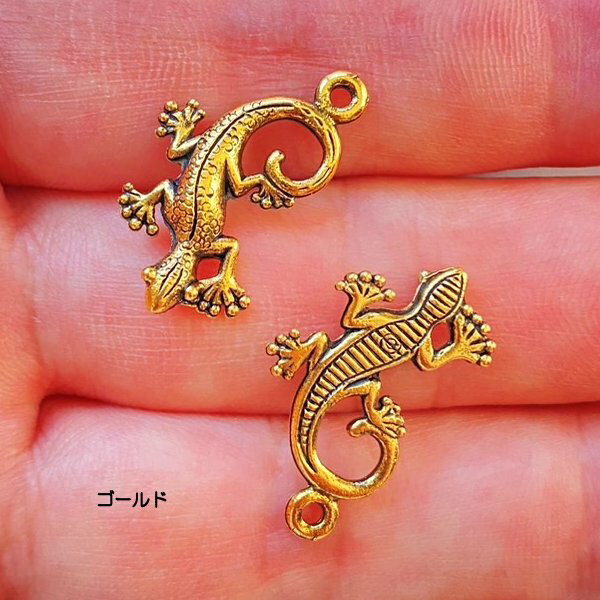 【USA製チャーム】アンティーク風・メタル・デコ・ゴールド・トカゲ【a1j6p】