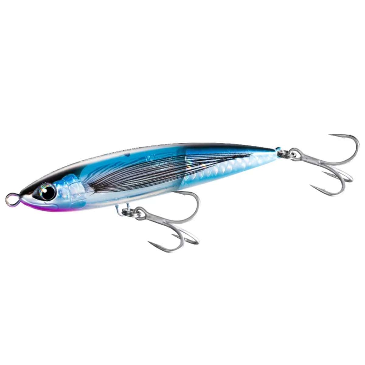 スモールシルエットでヒラマサからブリまで対応。 早期の小型トビウオやイワシに付いたヒラマサからブリまでをカバーできる小型設計。小さなエサを捕食する状況で最適なシルエットに仕上げています。また、貫通ワイヤーを採用し、大型の魚にも対応できるように設計しています。 145mm 46g