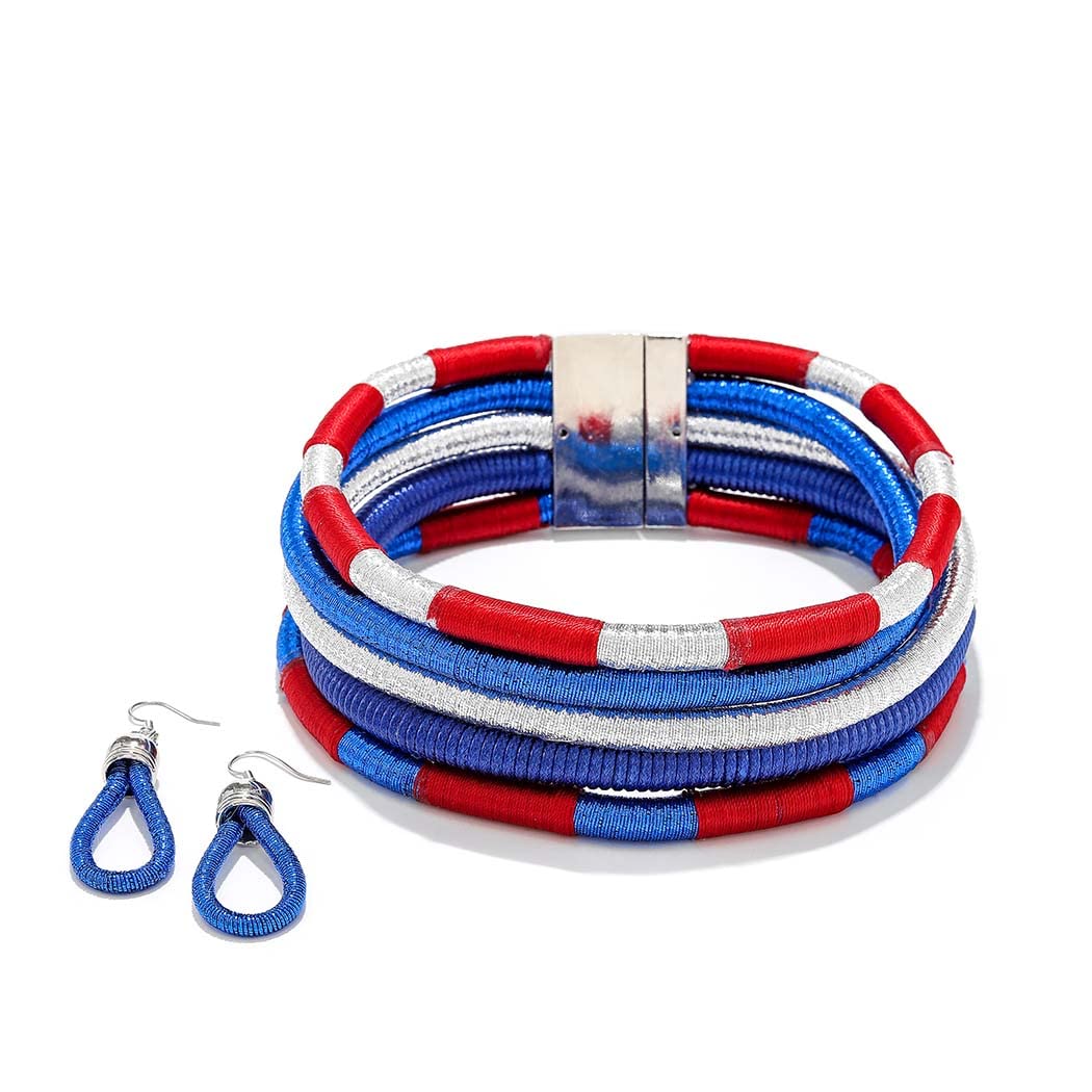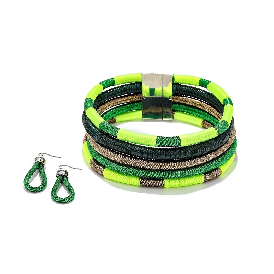 レイヤード トライバル チョーカー ネックレス イヤリング セット カラフル 織ロープ アフリカネックレス 織り襟 チャンキーステートメント ネックレス ジュエリーセット 女性用, , 亜鉛, 宝石なし。