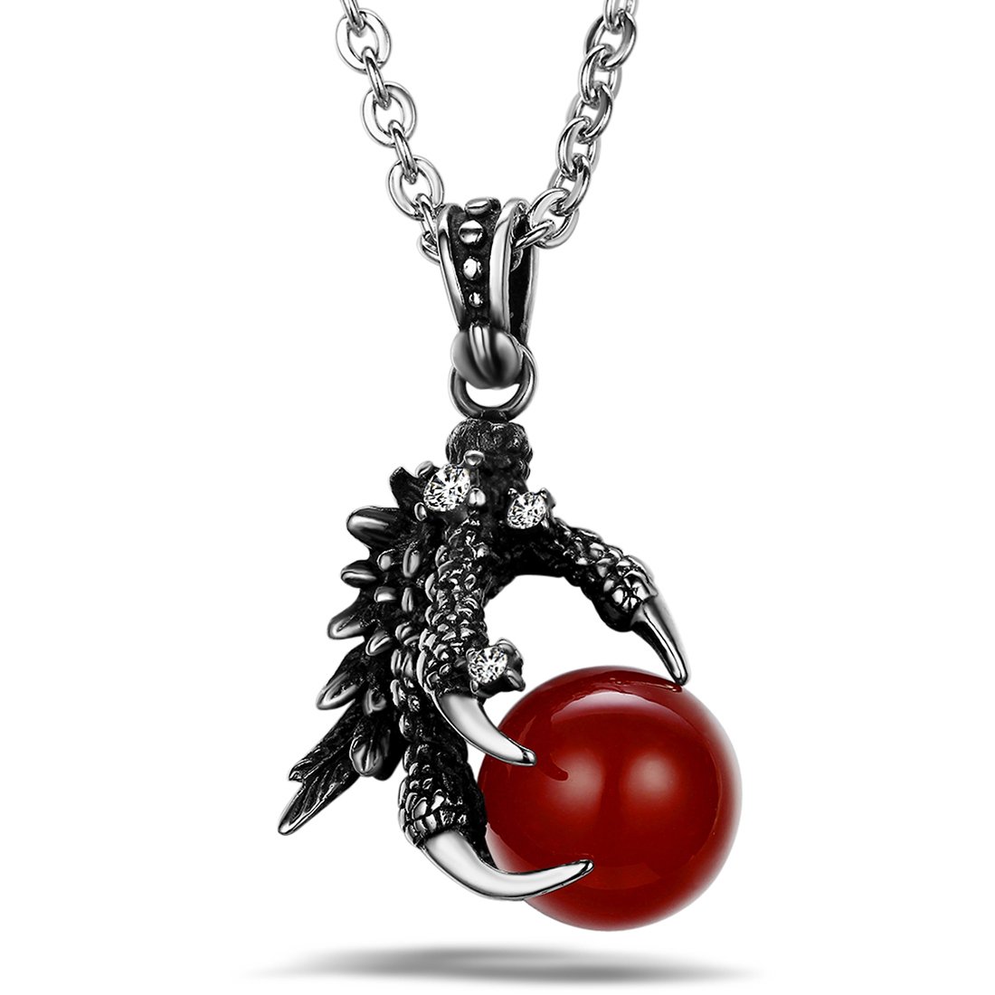 [] メンズ ネックレス,チョーカー,ペンダント トップ ヘッド コンビ セット, ゴシック トライバル ドラゴン クロー 龍爪 ボール, 人工瑪瑙, ステンレス, カラー:レッド; ブラック; シルバー(銀)