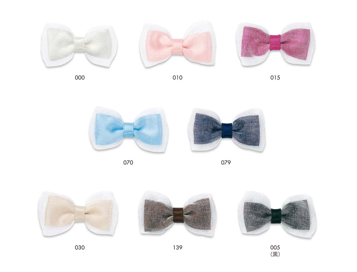 サテン・オーガンジー帯付き蝶タイリボンモチーフサテン蝶リボンにオーガンジーをまとったトランスペアレントな蝶リボンモチーフです。 *日本製*Material (素材) サテン:ポリエステル100% オーガンジー:ナイロン100% How to buy(購入について) 数量は1袋単位になります。1袋単位でお買い求めください。 1袋入数 2ヶ Notes (注意) 画面上と実物では多少色具合が異なって見える場合もございます。 ロットにより多少の色・サイズの違いが生じる場合や表示サイズと多少異なる場合があります。 ご了承ください。