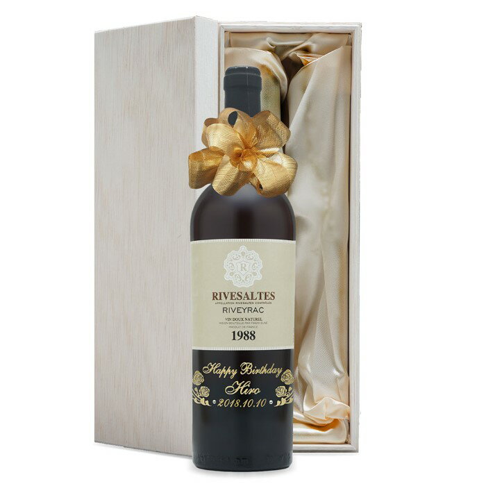 1988年 名前入り彫刻 生まれ年 赤ワイン リヴザルト リヴェイラック 甘口 昭和63年 名入れ 誕生日プレゼント ワインセット 木箱入