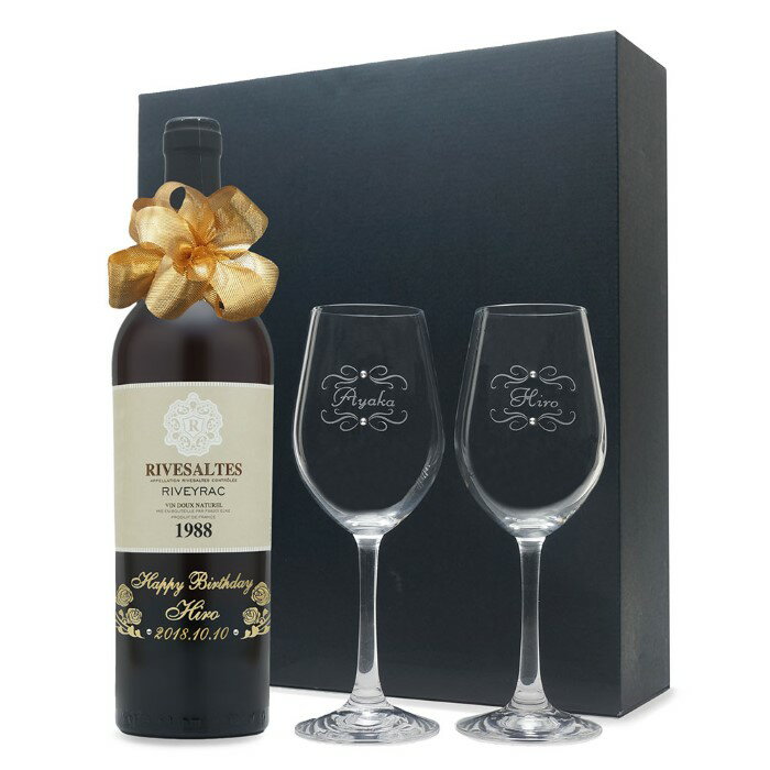 1988年 名前入り彫刻 生まれ年 赤ワイン リヴザルト リヴェイラック 甘口 ペアワイングラスセット 昭和63年 名入れ 誕生日プレゼント ワインセット 化粧箱入