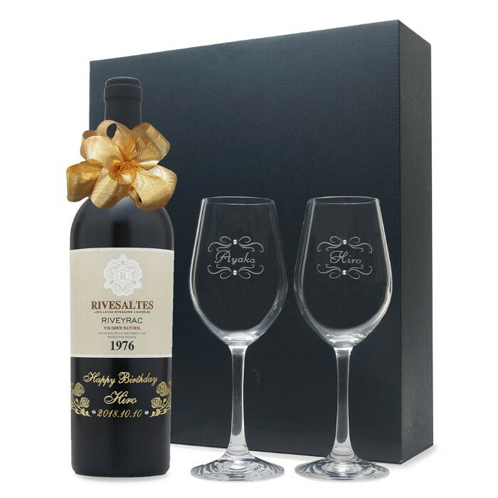 1976年 名前入り彫刻 生まれ年 赤ワイン リヴザルト リヴェイラック 甘口 ワイングラスセット 昭和51年 名入れ 誕生日プレゼント ワインセット 化粧箱入