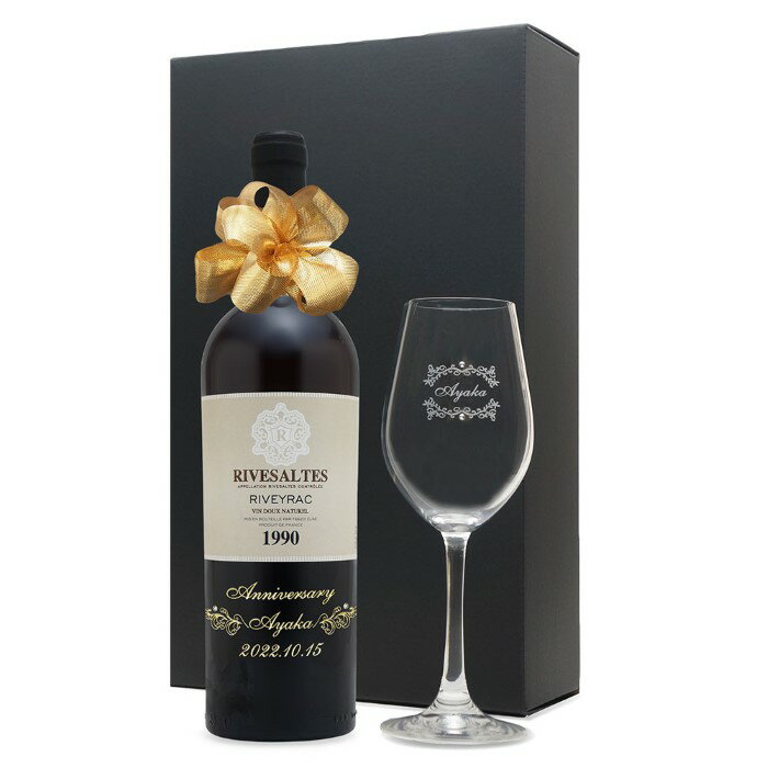 1990年 名前入り彫刻 生まれ年 赤ワイン リヴザルト リヴェイラック 甘口 ワイングラスセット 平成2年 名入れ 誕生日プレゼント ワインセット 化粧箱入