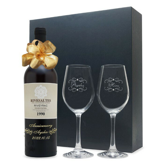 1990年 名前入り彫刻 生まれ年 赤ワイン リヴザルト リヴェイラック 甘口 ペアワイングラスセット 平成2年 名入れ 誕生日プレゼント ワインセット 化粧箱入