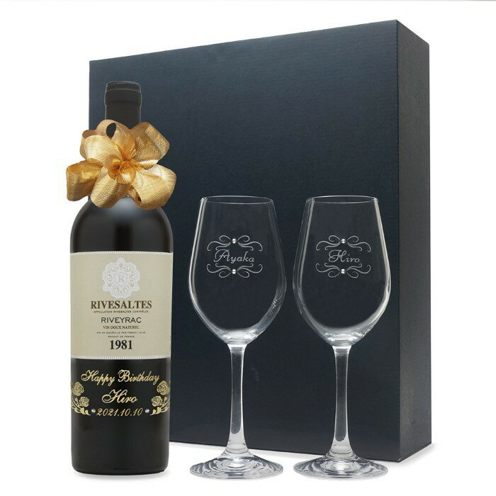 1981年 名前入り彫刻 生まれ年 赤ワイン リヴザルト リヴェイラック 甘口 ペアワイングラスセット 昭和56年 名入れ 誕生日プレゼント ワインセット 化粧箱入