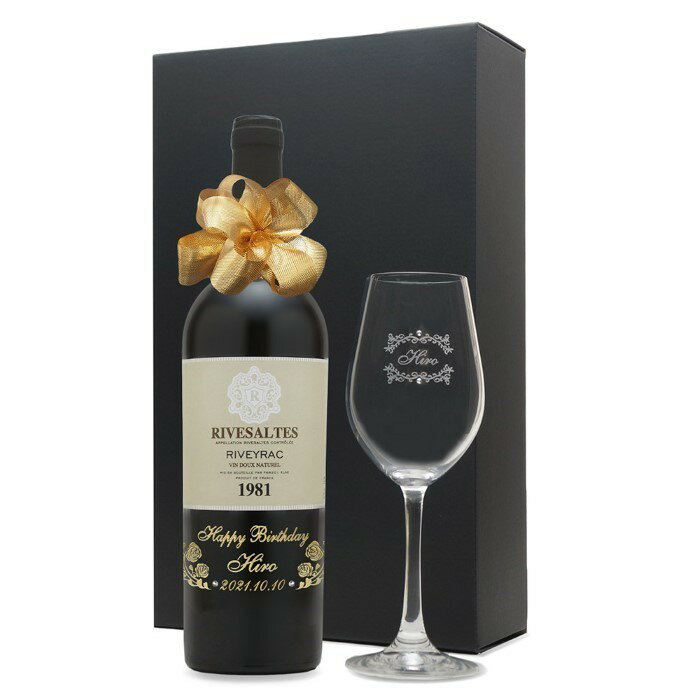 1981年 名前入り彫刻 生まれ年 赤ワイン リヴザルト リヴェイラック 甘口 ワイングラスセット 昭和56年 名入れ 誕生日プレゼント ワインセット 化粧箱入