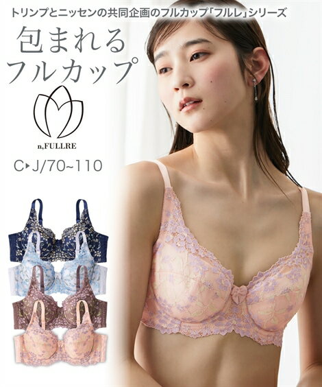 【15%OFF!2点以上&クーポン利用で★12/11 10:59まで】ブラジャー 大きいサイズ 下垂防止 脇高 レディース フルカップ ワイヤー入り チューリップ柄 トリンプ E90~J85 ニッセン nissen