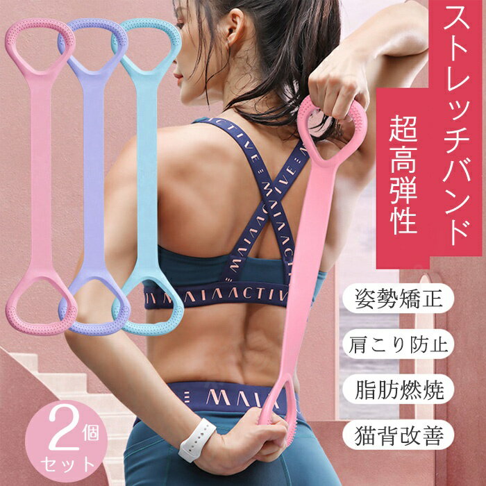 トレーニングチューブ エクササイズ 2本セット 8字筋 背中トレーニング エクササイズ ヨガ 肩ストレッチバンド 背筋 肩甲骨 筋トレ ストレッチ 弾性 ヨガバンド 肩こり解消 ストレッチバンド 背中トレーニング ダイエット 水洗い可能 2本セット 背中 姿勢改善